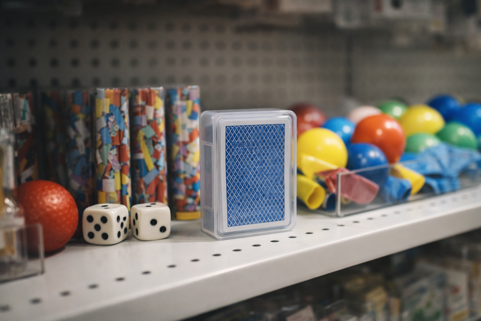 ダイソーのプラスチックトランプは、基本的に「玩具・パーティー」系の並びに置かれることが多いです。