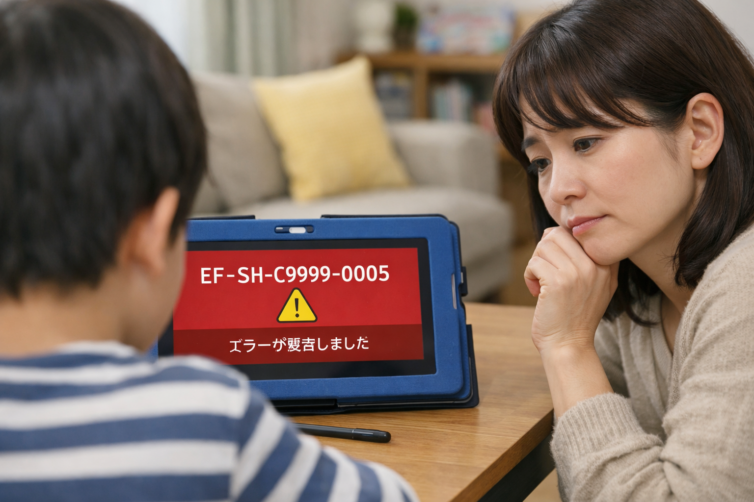 この記事では、EF-SH-C9999-0005の考えられる原因から、今すぐできる対処法、RESETと初期化の違い、問い合わせの目安まで、保護者目線でわかりやすく整理しました。