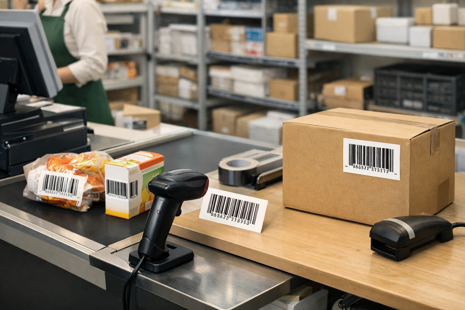 バーコードは、レジ、在庫管理、検品など、素早く識別したい場面にぴったりです。