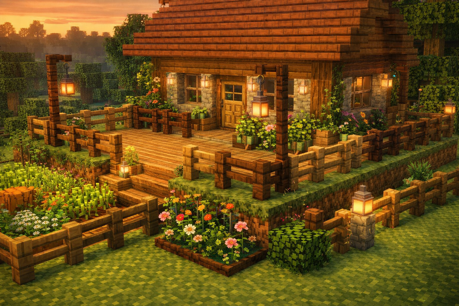 動物や村人を囲う実用性がありながら、家や畑、道まわりをおしゃれに見せる装飾としても使えます。