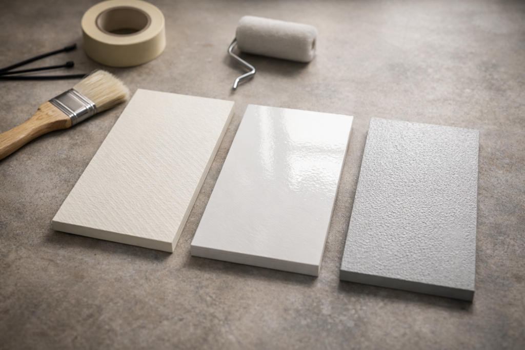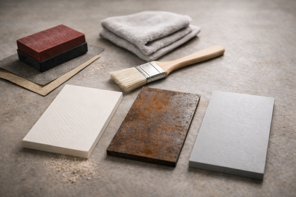 - コンクリートやボードは、下地処理が仕上がりを大きく左右します。