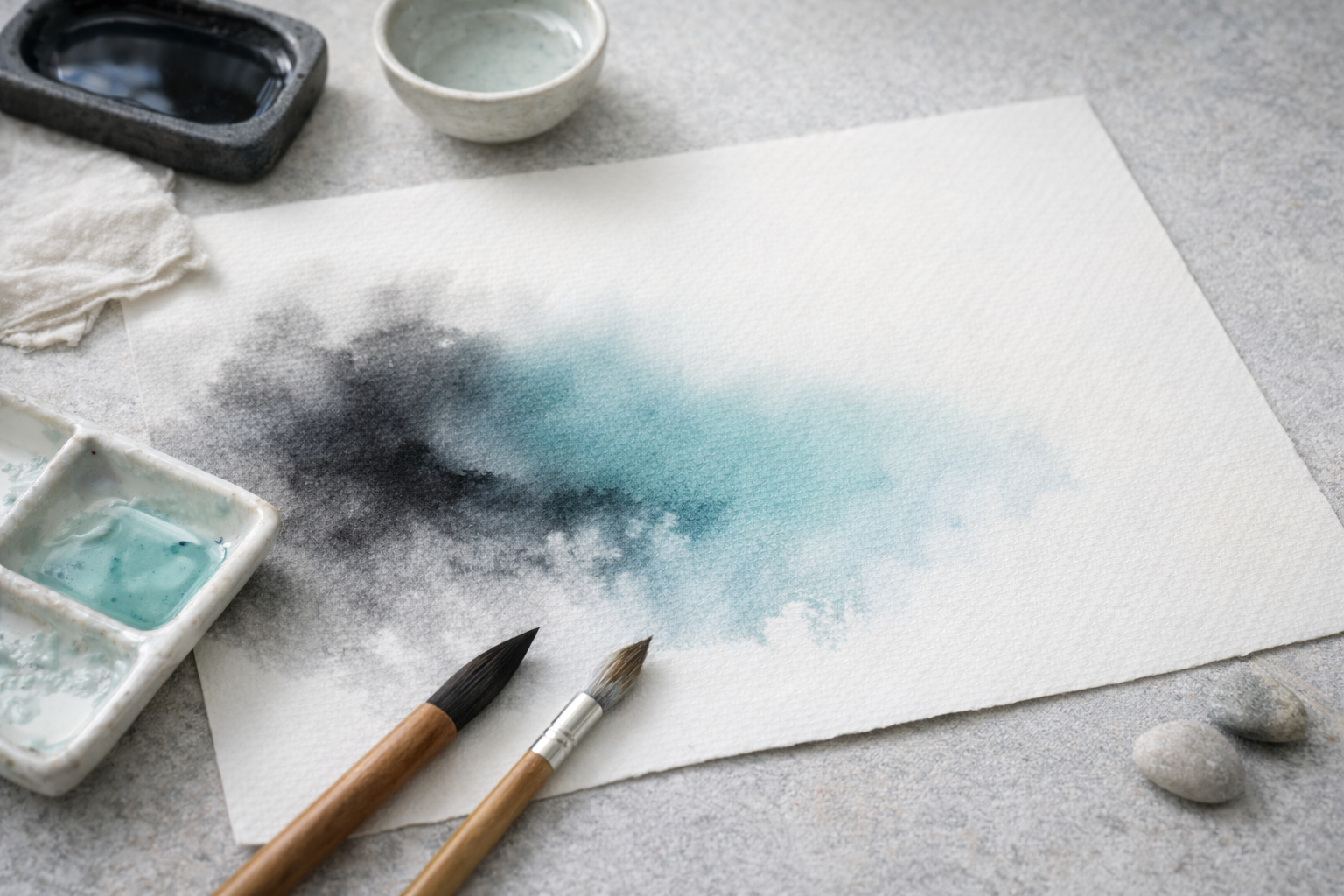 小さく試して、うまくいったところを少しずつ増やしていくと、気づいたら自分らしい“墨と水彩の混ざり方”が見つかります。