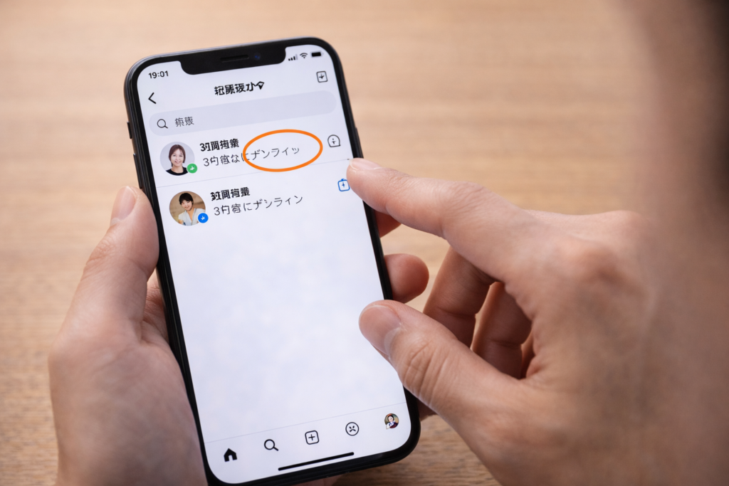| メッセージ画面 | アクティブ/今オンライン など | 会話中の補助情報として表示されることがある |