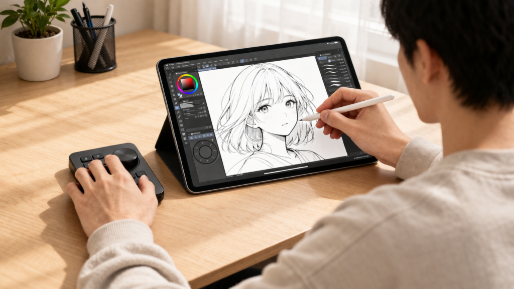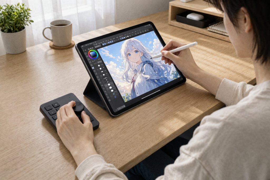 この記事では、iPad版クリスタで左手デバイスを使うメリットから、失敗しにくい選び方、おすすめタイプまでやさしく整理していきます。