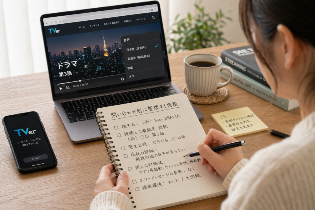 • TVerの副音声問題は、設定ミスではなく解説放送版を再生していることが原因のケースが多い