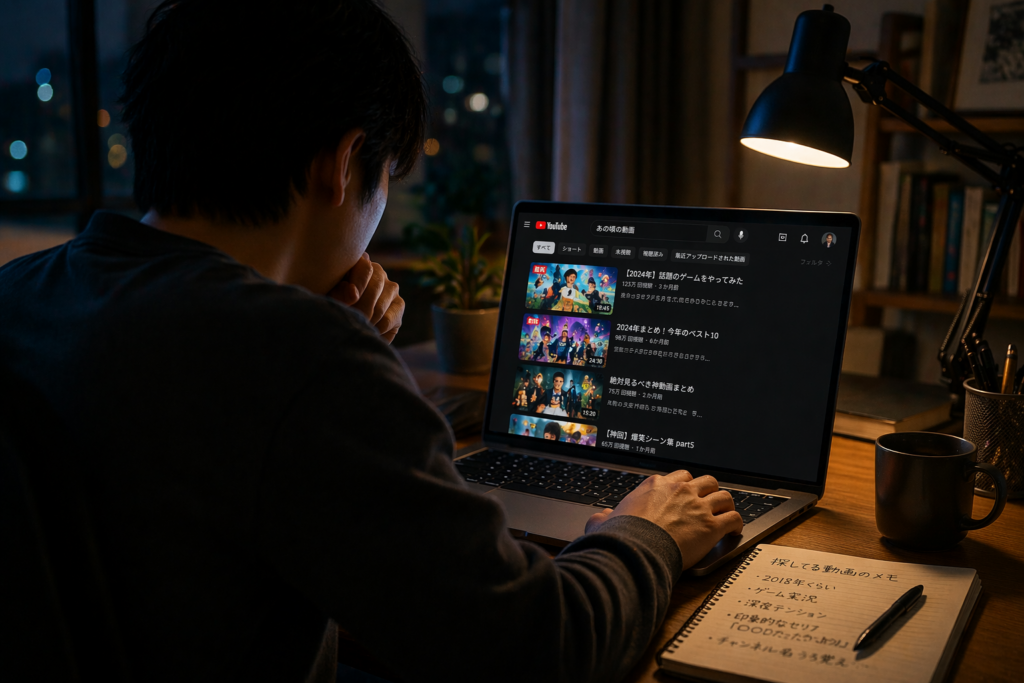 YouTubeで昔の動画を探すときは、いきなり検索語を増やすよりも、なぜ見つからないのかを先に整理したほうが早く到達できます。