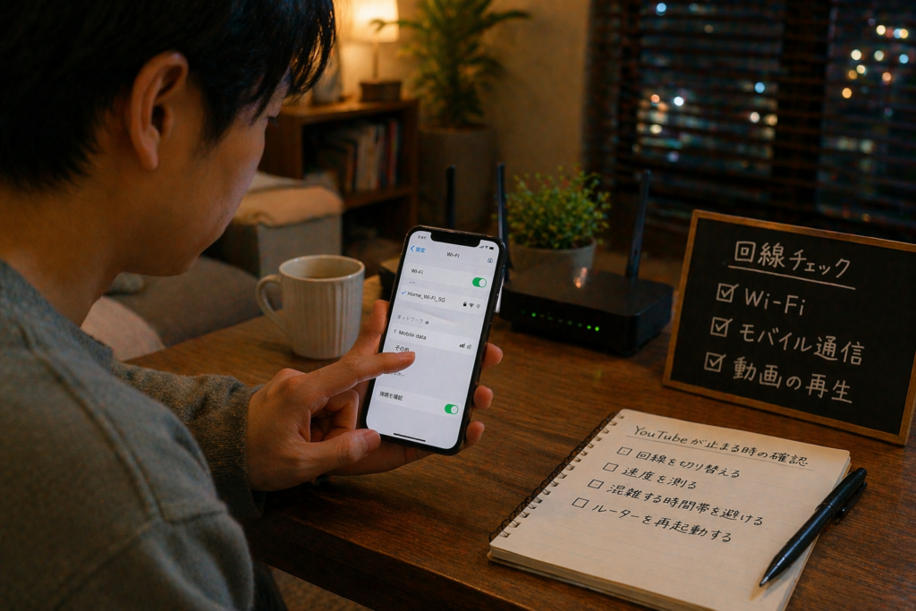 スマホならアプリの不整合や省電力設定、PCならブラウザのキャッシュや拡張機能、さらに通信環境やYouTube側の設定まで関係することがあります。